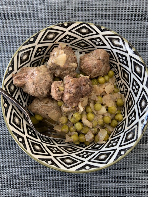 Once you have shaken the meatballs in the pan, you can add the sauce to the pan, add the frozen peas, and mix slightly before allowing the pan to simmer on low-medium for 10min or until the peas cooked through.